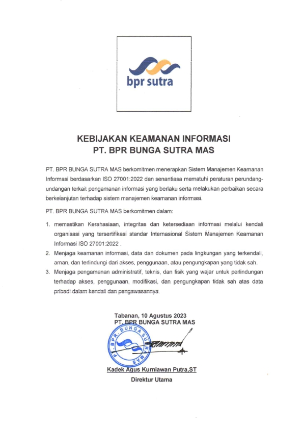 Kebijakan Keamanan Informasi PT. BPR Bunga Sutra Mas